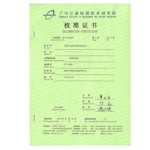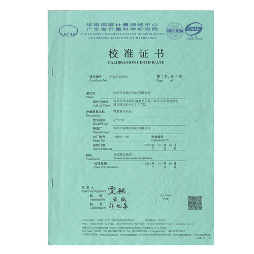 AP-S-O2 華南計(jì)量證書