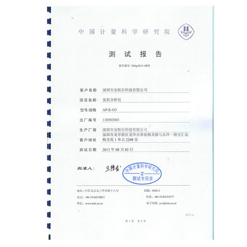 中國(guó)計(jì)量院臭氧檢測(cè)報(bào)告