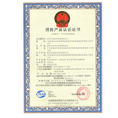 APEG-J 消防產品認證證書